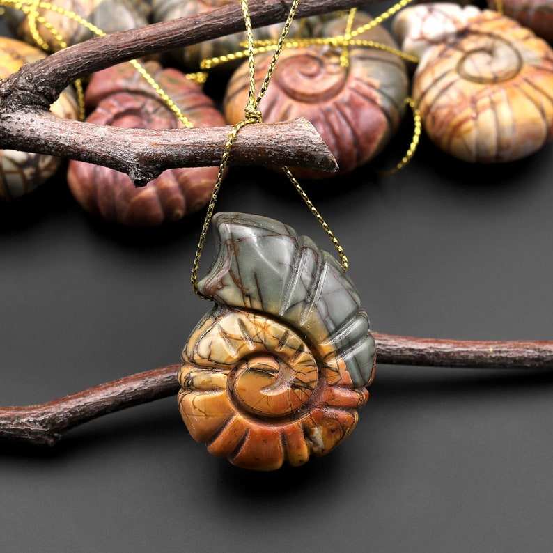Keyword:AA+ Carved Ammonite Drilled Pendant Top Side Drilled Necklace Jewelry