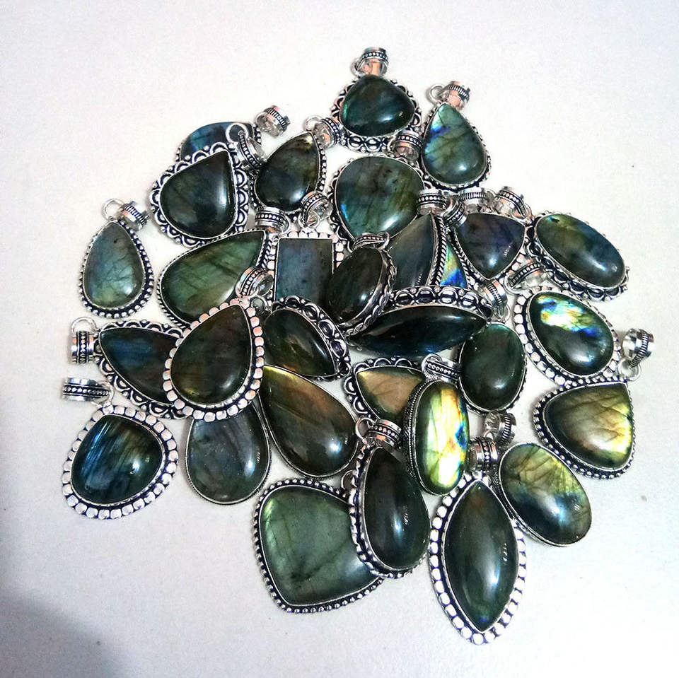 Pendentif en pierre précieuse Labradorite naturelle de créateur AAA, bijoux en laiton plaqué argent de style bohème pour enfants
