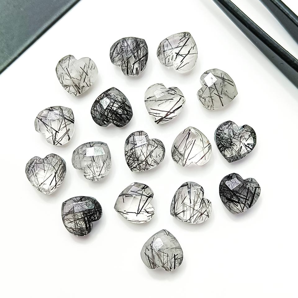 Pierre précieuse en rutile noir facetté, sculptée à la main en forme de cœur, pour la création de bijoux, 10 mm, perles de rutile noir en vrac.