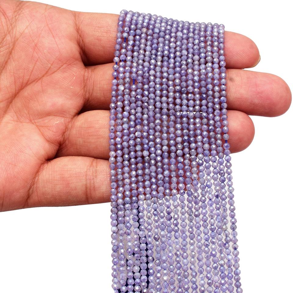 Perles de pierre de lune bleue AAA+ 2mm-3mm micro facettées, pierre de lune naturelle plaquée argent, pierre semi-précieuse, perles rondes pour bijoux