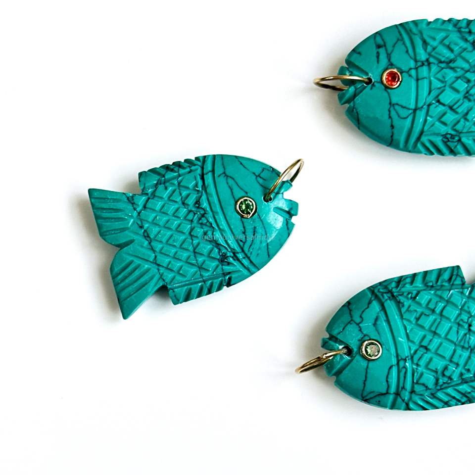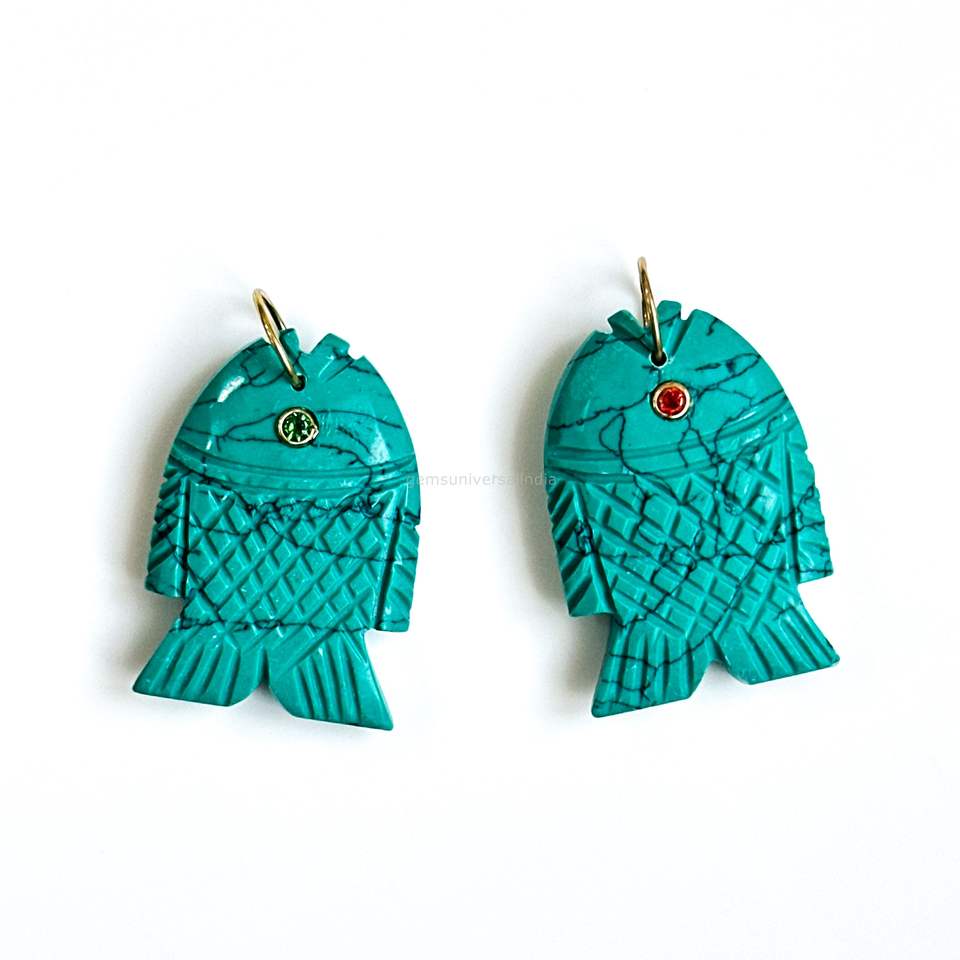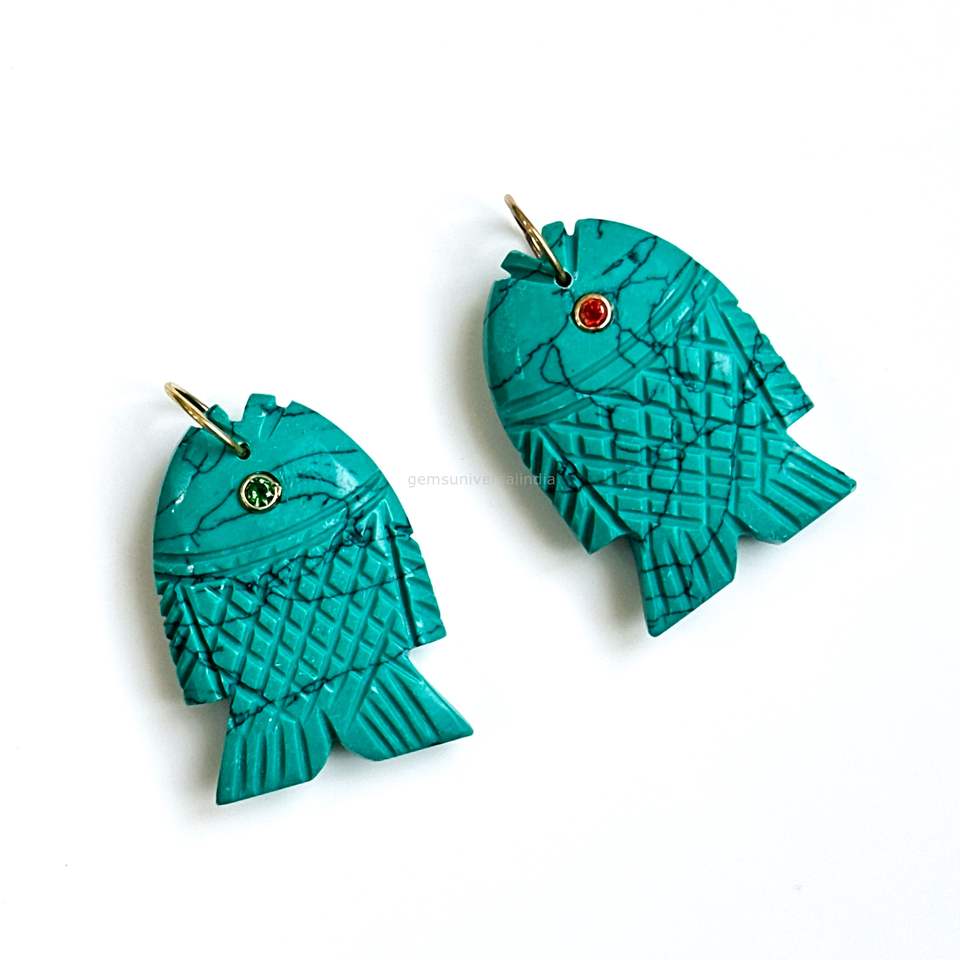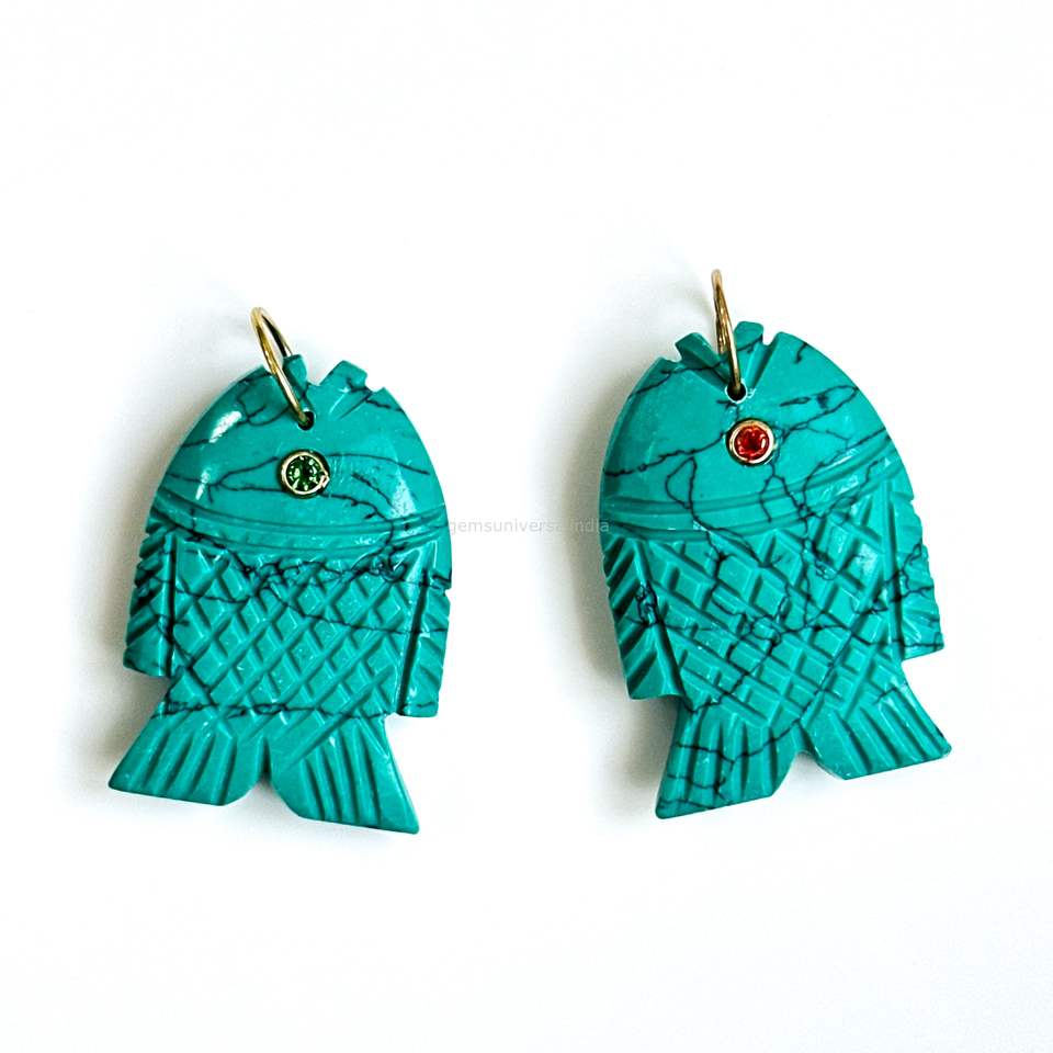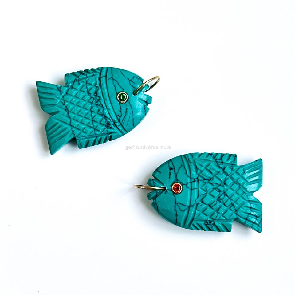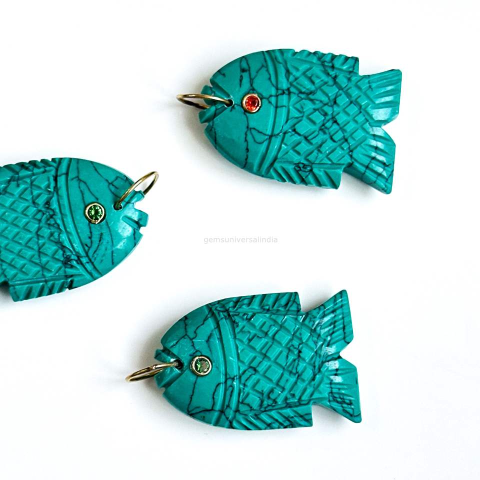 Nom de la pierre précieuse:Pendentifs Breloques Poisson Turquoise Bleu AAA