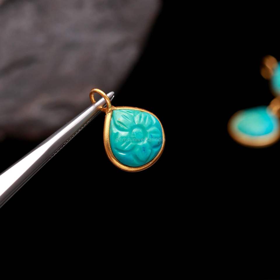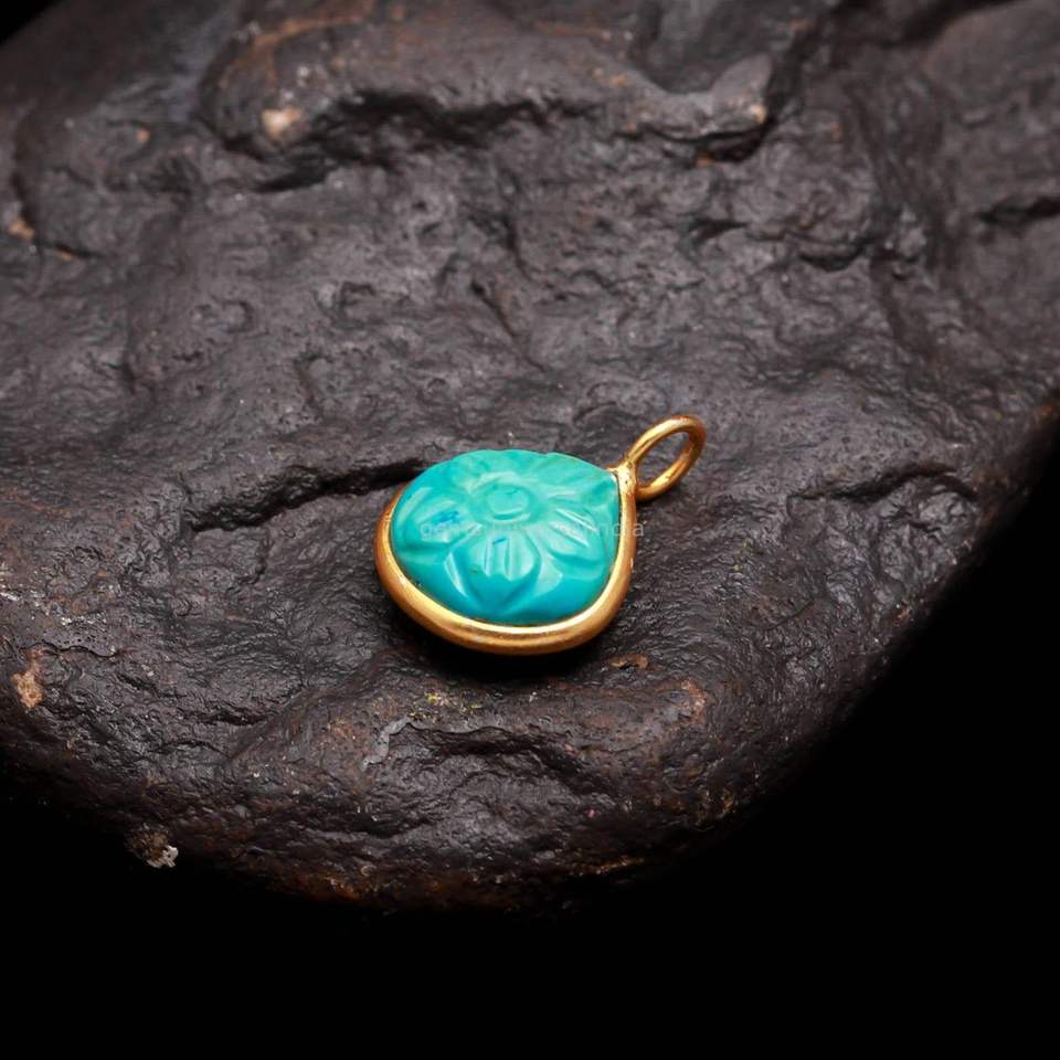 Pendentif en pierre précieuse bleue turquoise sculptée à la main, en argent sterling 925, charme en pierre turquoise bleue pour la fabrication de bijoux, 12 mm