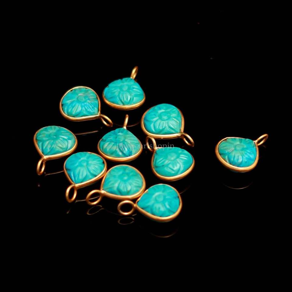 Pendentifs et breloques en turquoise bleu naturel sculptée