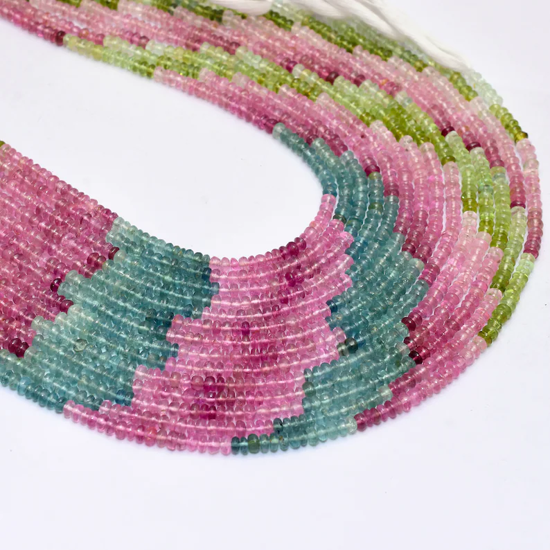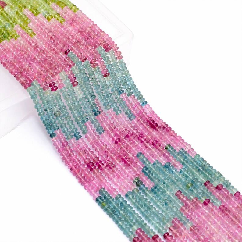 AAA + Calabar Mines Tourmaline 4mm Perles Rondelle Lisse | Brin de 14 pouces | Perles en vrac de pierres précieuses multi-tourmaline naturelles