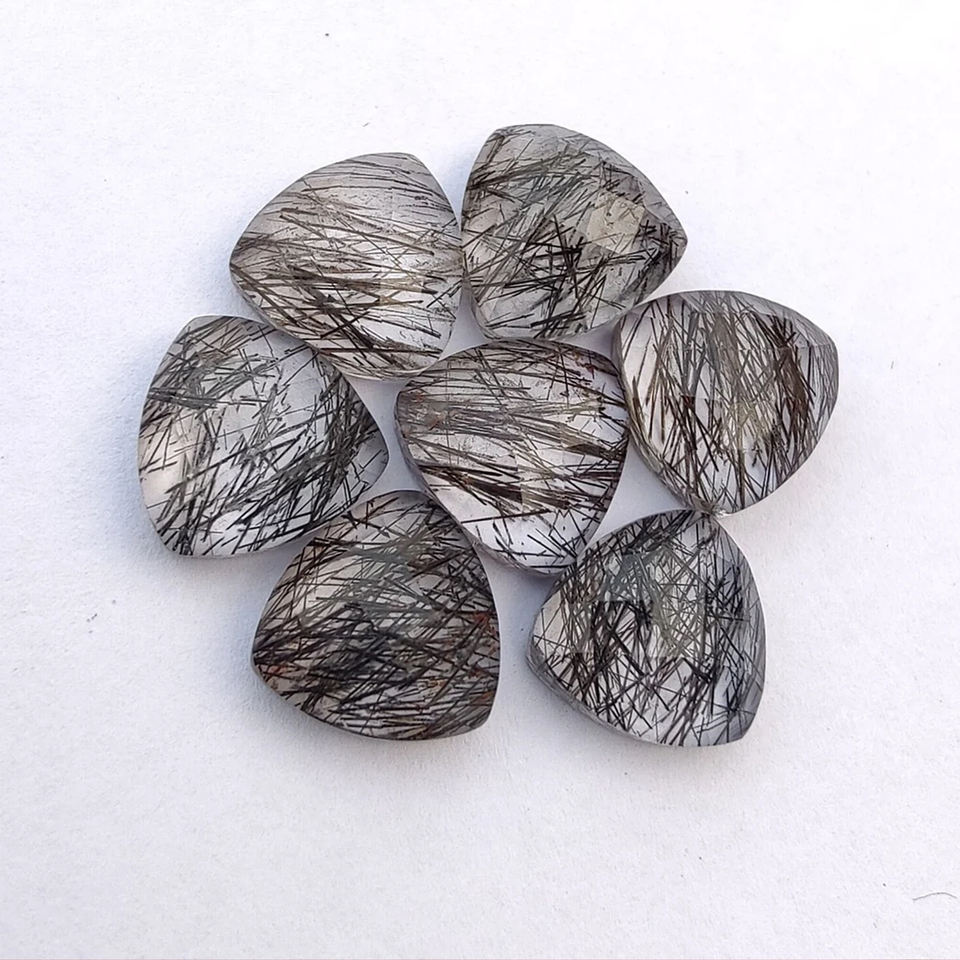 Checker en forme de trillion de rutile noir naturel de qualité AAA taillé à dos plat pierres précieuses en vrac tailles personnalisées disponibles en gros calibrées