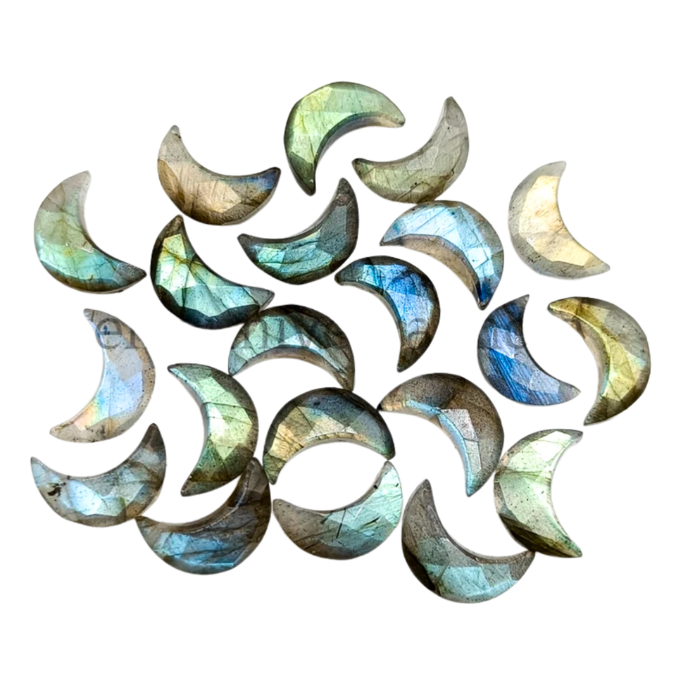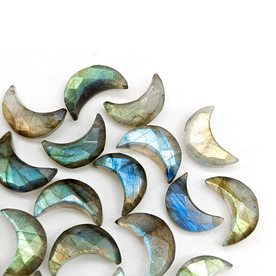 Labradorite Faceted Moon Carved Beads