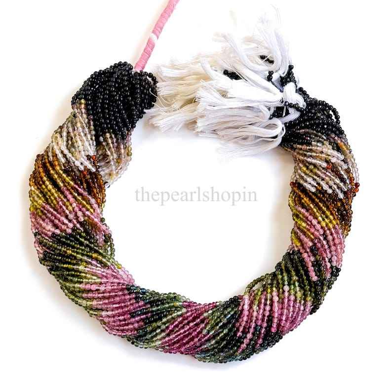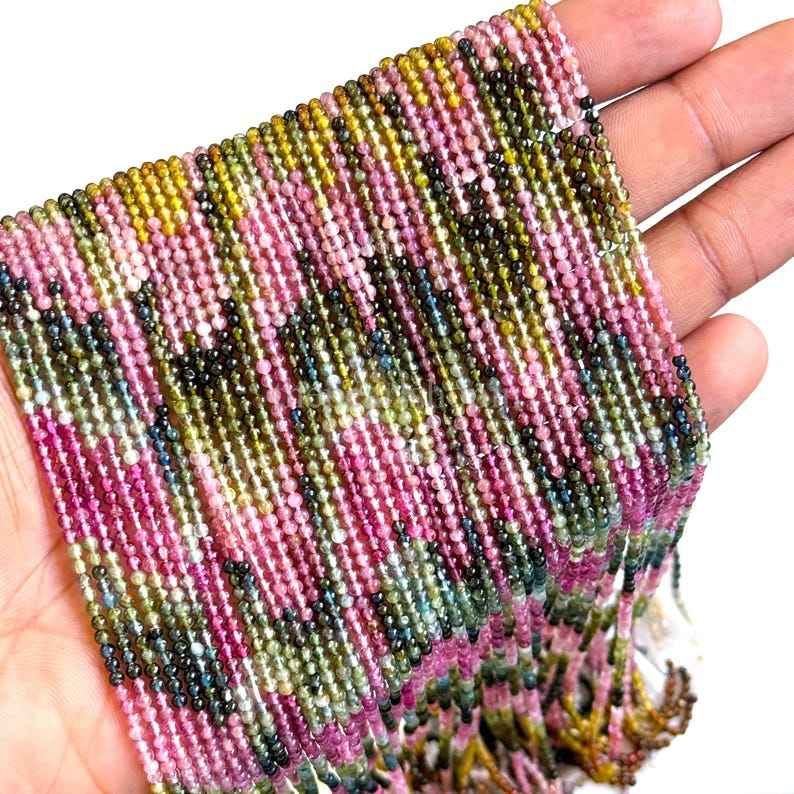 Perles rondes en tourmaline naturelle AAA 2,5 mm, perles rondes lisses en tourmaline, perles de pierres précieuses pour la fabrication de bijoux, artisanat, en vrac