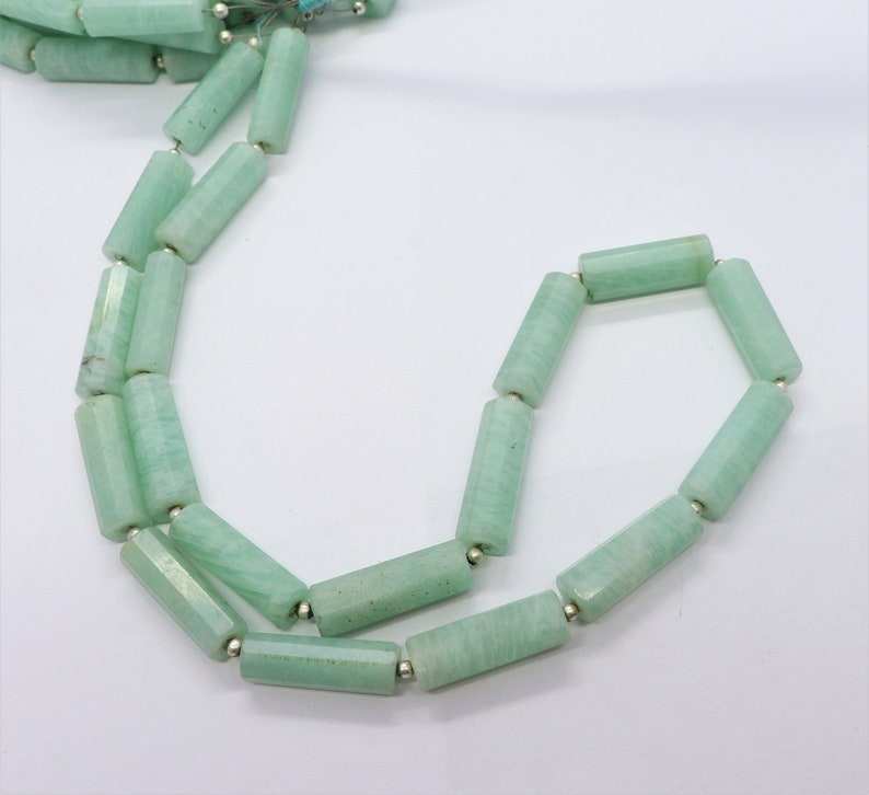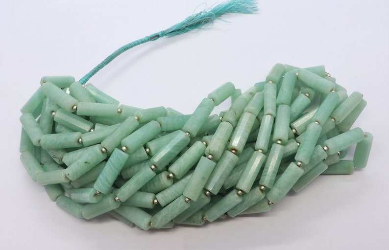 Perles en amazonite naturelle facettée de forme cylindrique, 6x20 mm, perles en amazonite en forme de tube, 16 pouces, amazonite facettée de forme cylindrique