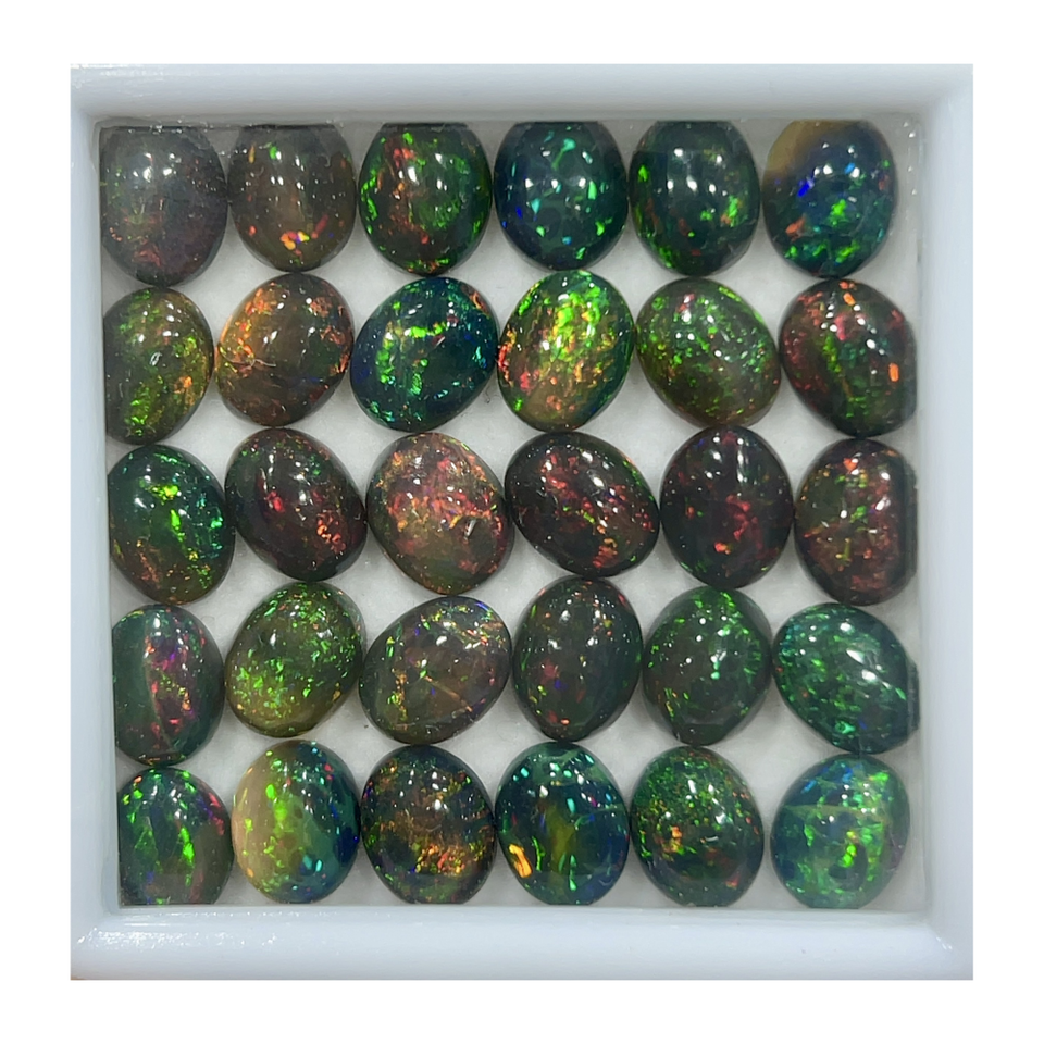 AAA Natural Black Ethiopian Opal Cabochon 7x9mm Calibrated Oval Gemstone Full Flashy Alif International Certified for