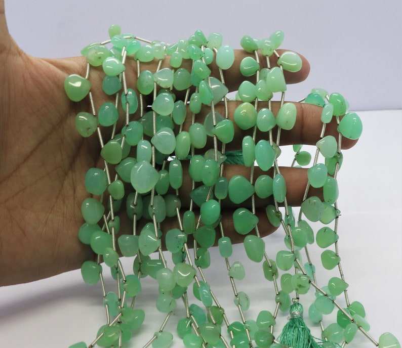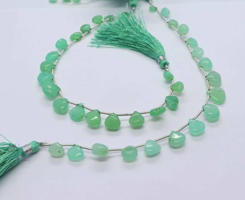 Perles en chrysoprase naturelle, forme cœur lisse