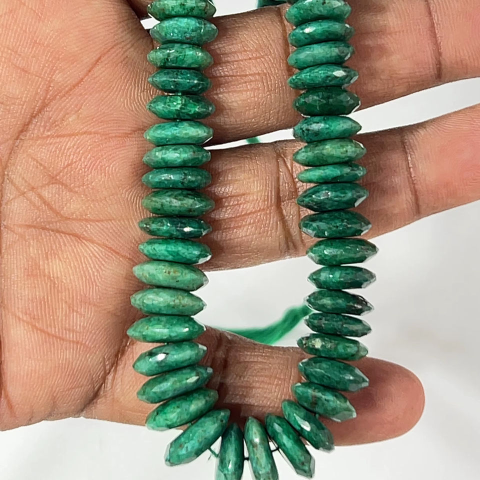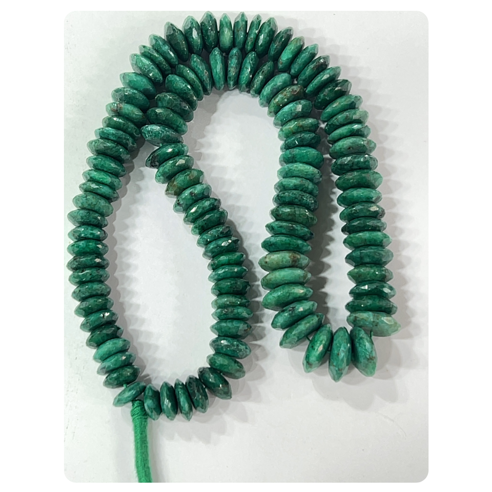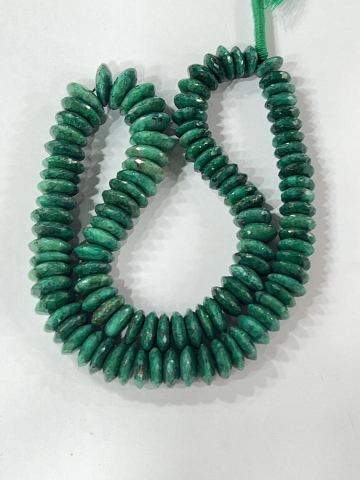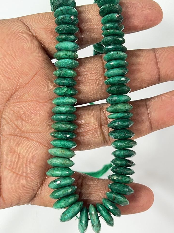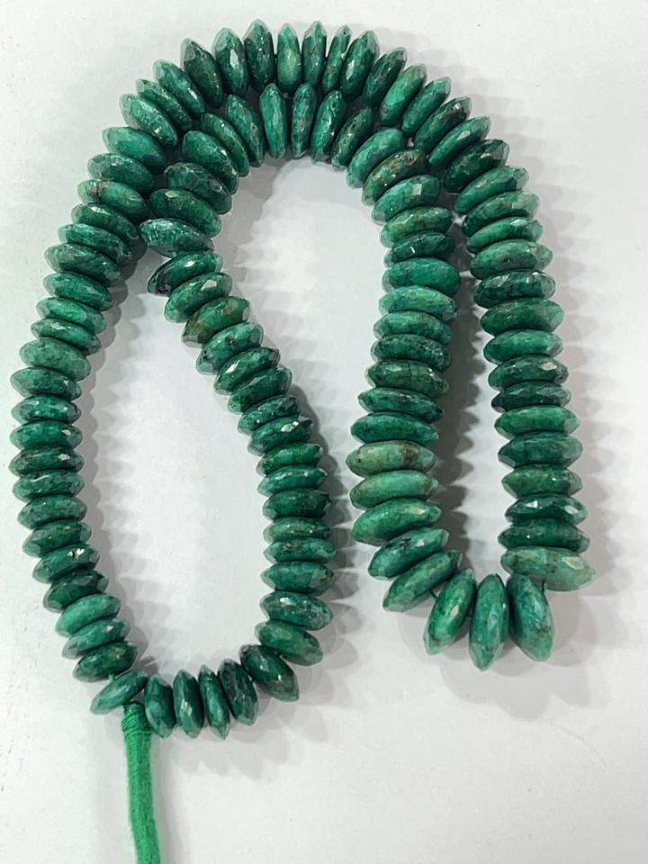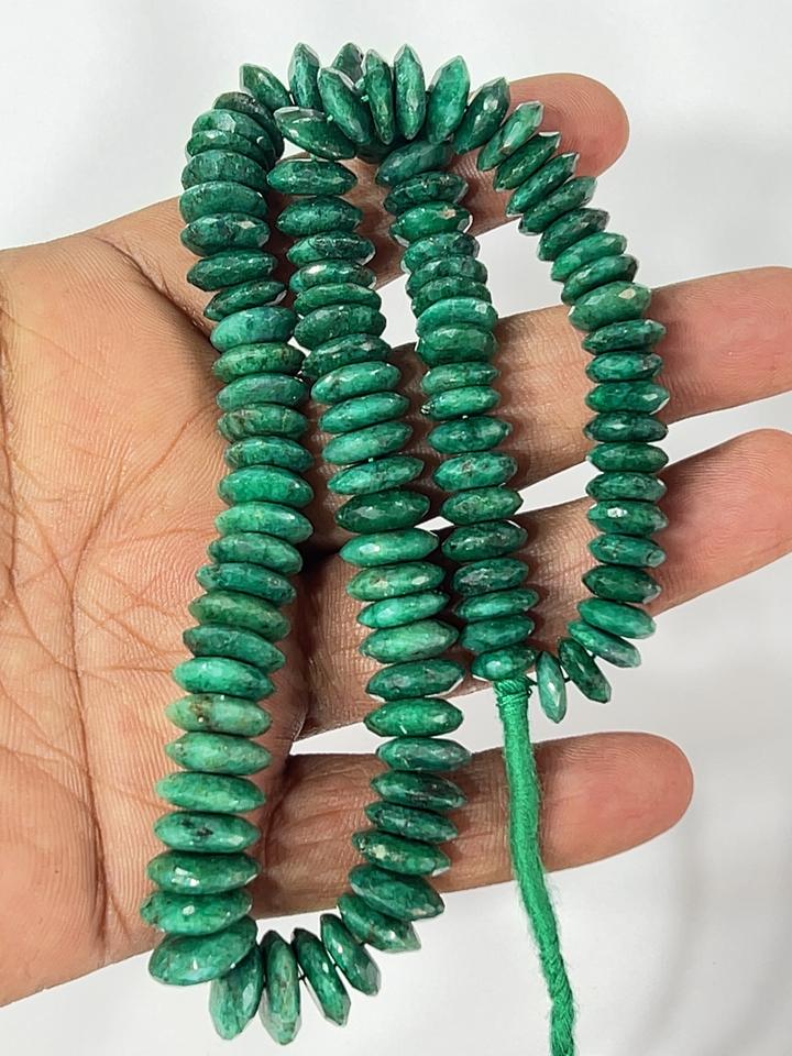 AAA Natural Green Corundum Emerald German Cut Faceted Rondelle Stone Beads 8-10mm Size 14 Inches Strand