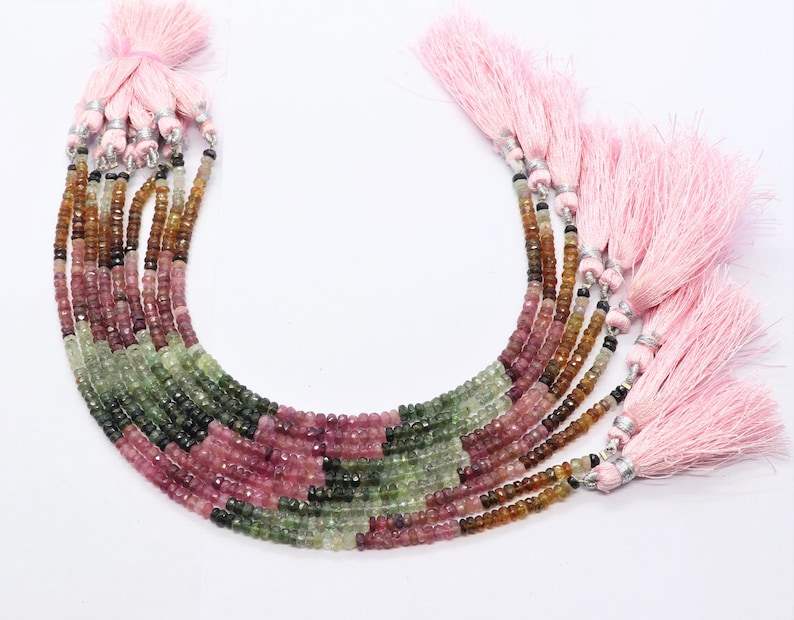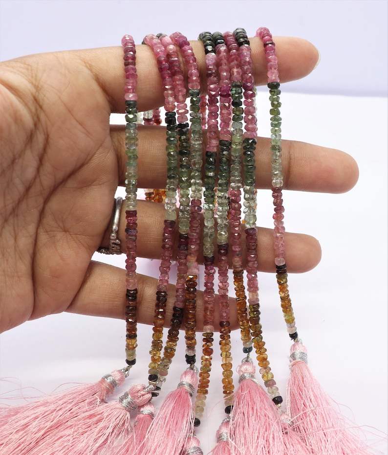 Nom du produit:Perles rondelles à facettes en tourmaline naturelle multicolore