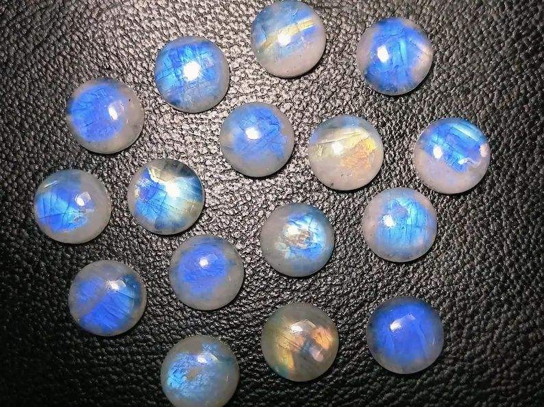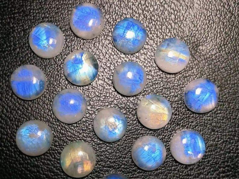 Cabochons ronds en pierre de lune arc-en-ciel de qualité AAA 12mm, bleu naturel, lot de 8 pierres précieuses en vrac