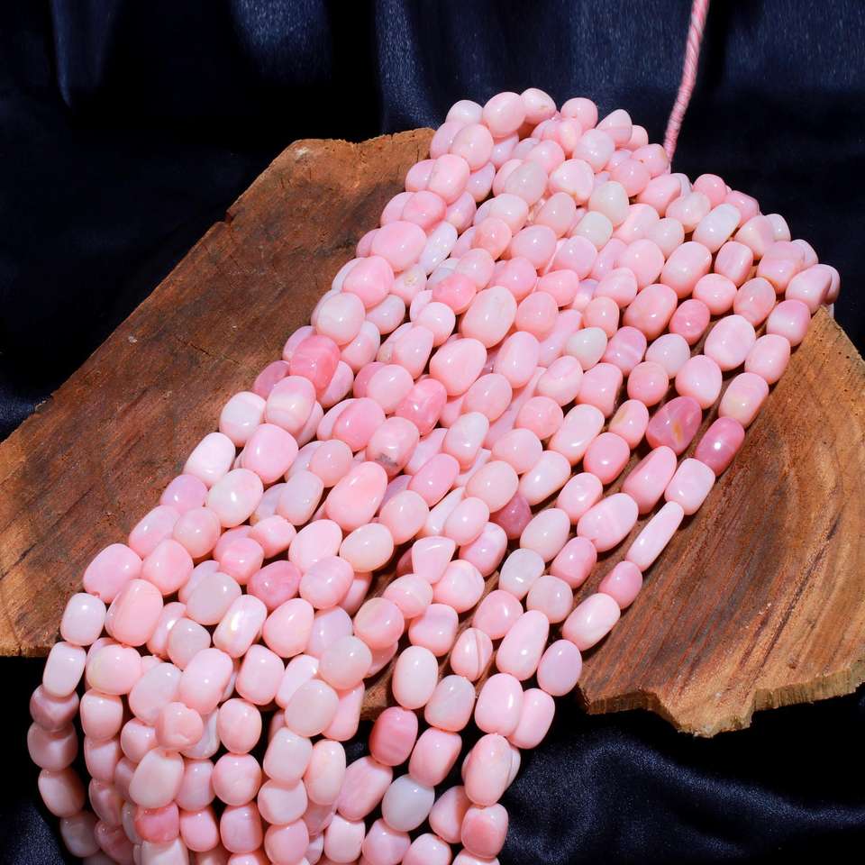 AAA+ Quality 16-Inch Pink Opal Gemstone Beads Smooth Tumble Shape 10X12mm Plain Nuggets Loose Beads for Bracelets Jewelry