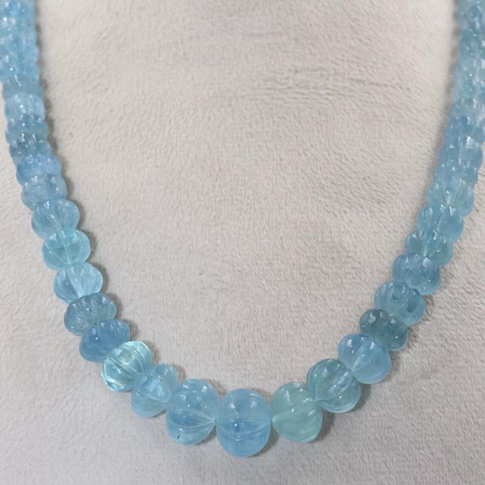 Product name:Blue Aquamarine Smooth Carving Melon Shape Beads Necklace