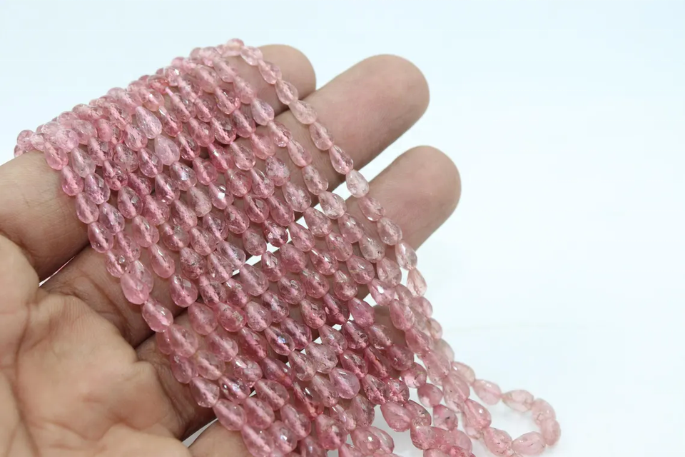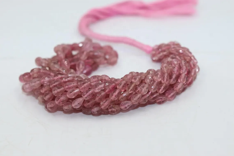 Nom du produit:Perles de tourmaline rose à facettes, perçage droit, en forme de goutte