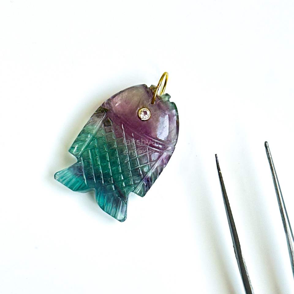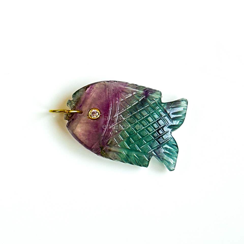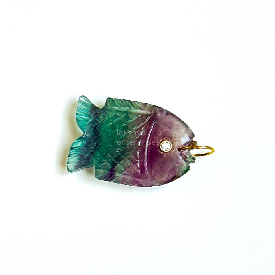 Natural Rainbow Fluorite Fish Pendant Charms