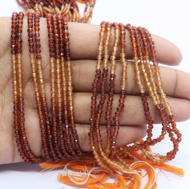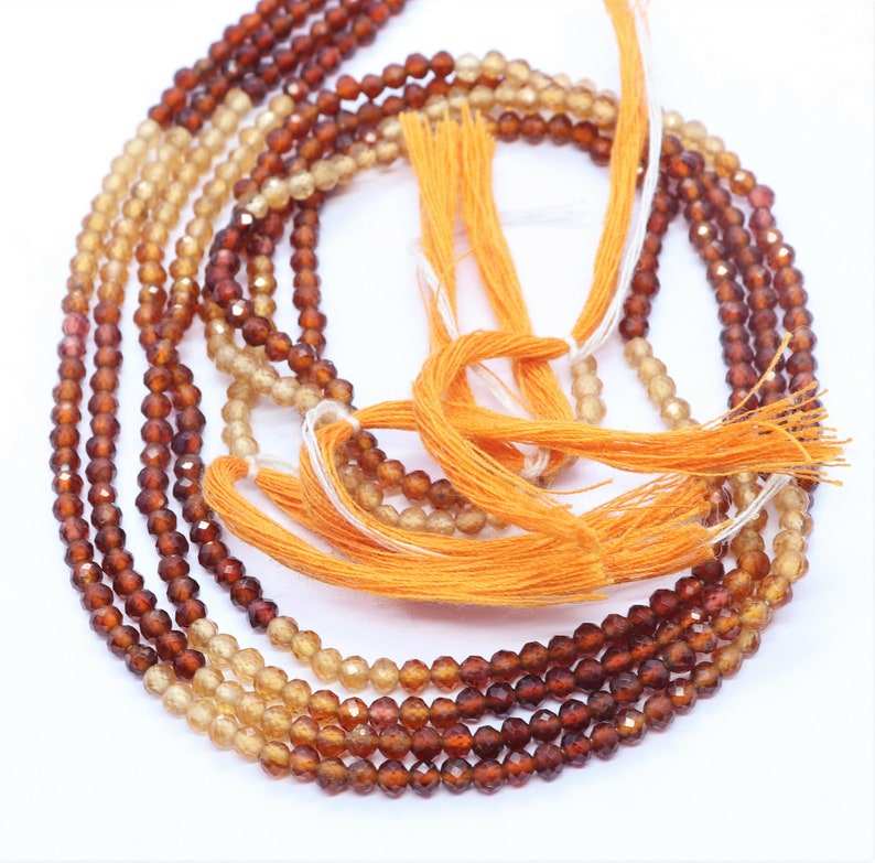 Perles facettées en grenat Hessonite ombré AAA, 3 mm, perles en pierre précieuse grenat Hessonite naturel, brin de 13 pouces pour la fabrication de bijoux