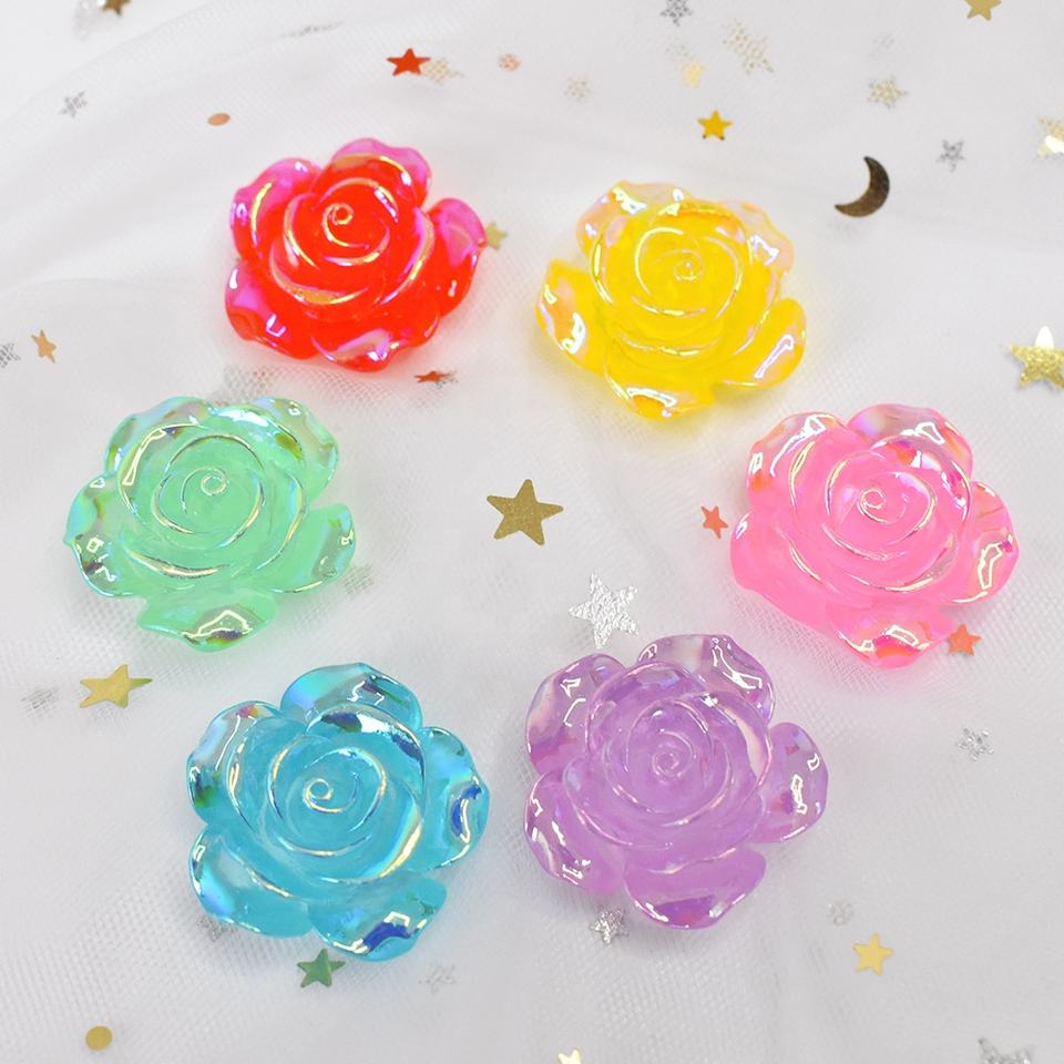 Cabochons plats en résine transparente AB en forme de fleurs de camélia et de roses pour bijoux faits main, coques de téléphone, épingles à cheveux et décorations capillaires