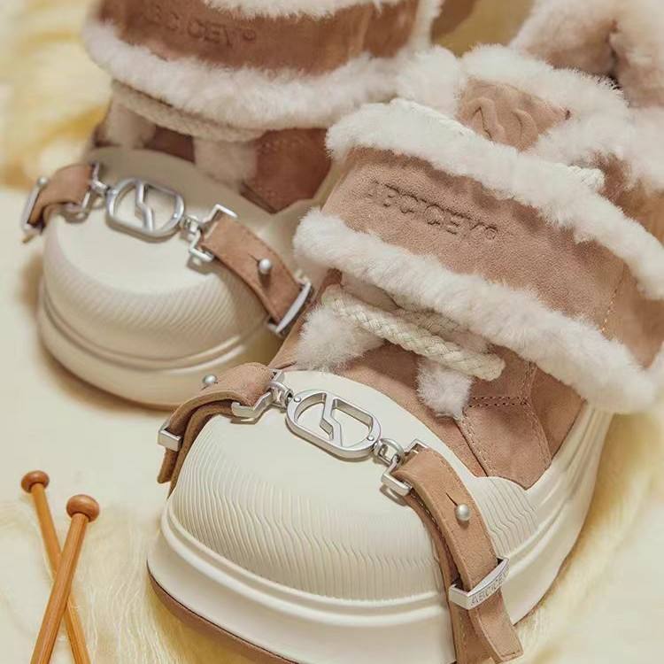 ABCICEY Bottes de neige à semelle épaisse, talon moyen, fourrure chaude, chaussures d'hiver avec boucle, bande élastique, couleur unie, marron