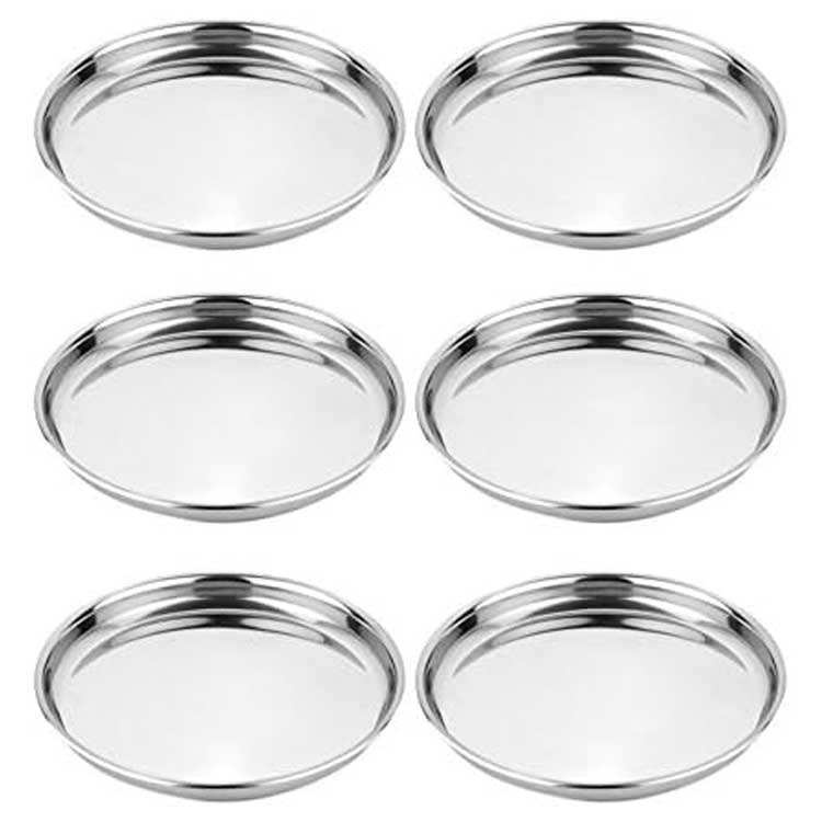 ABK IMPEX Ensemble de 4 assiettes à dîner classiques en acier inoxydable réutilisables et non toxiques de haute qualité pour le camping - MOQ faible