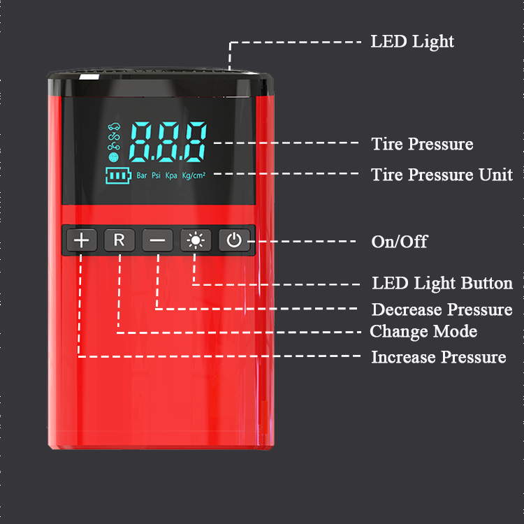 Lumière De secours, Moniteur de Pression des pneus, Portable, Arrêt automatique, Gonfler rapidementFonction