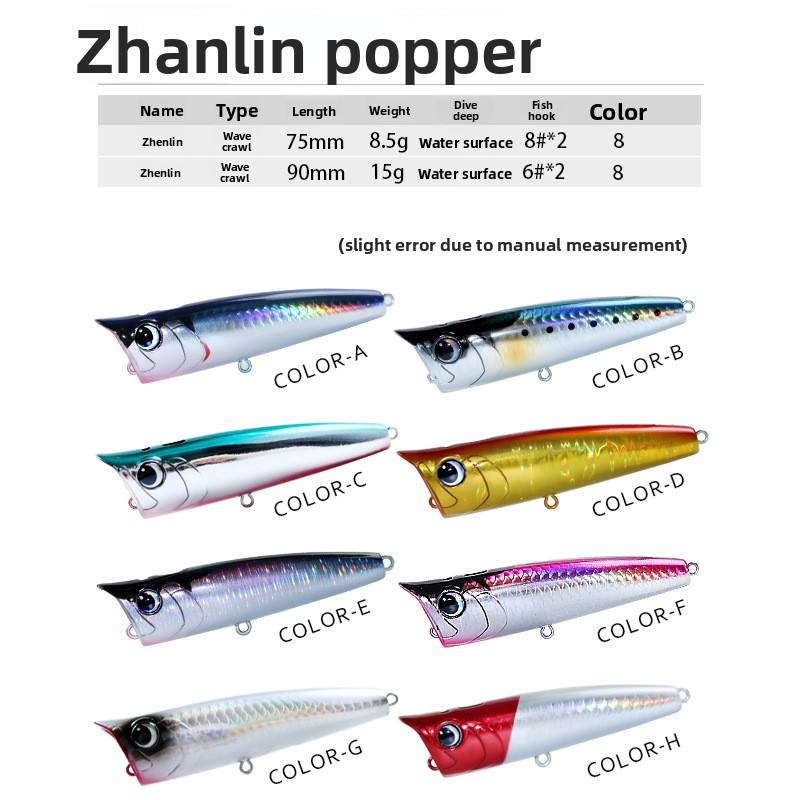 Leurre de pêche en mer ABS à action de vague d'eau de surface, grand format, 8,5g 15g, crankbait zigzag, appât dur artificiel pour eau douce et marine
