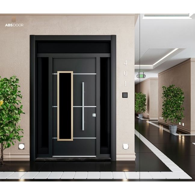 ABSDOOR PANDORA Luxury Steel Interior Entrance Door Unbreakable Glass Panel Apartment Entry Sound Thermal Insulation Turkey