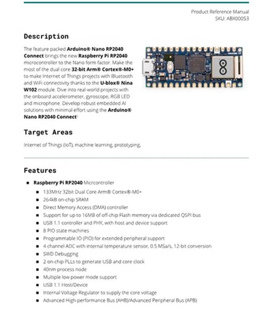 Module/Panneau Type:Carte de développement RP2040 Connect