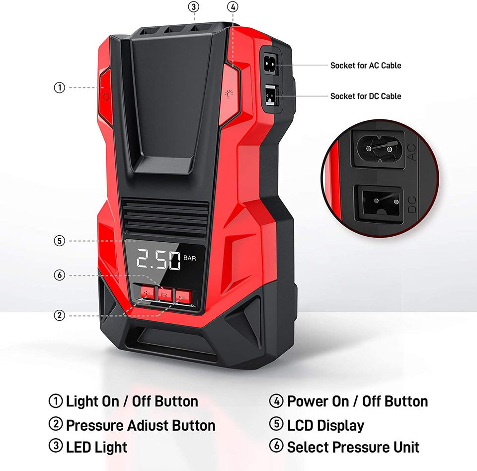 Function:Quick inflation, Pressure Detection, Auto Stop, LED LIGHT