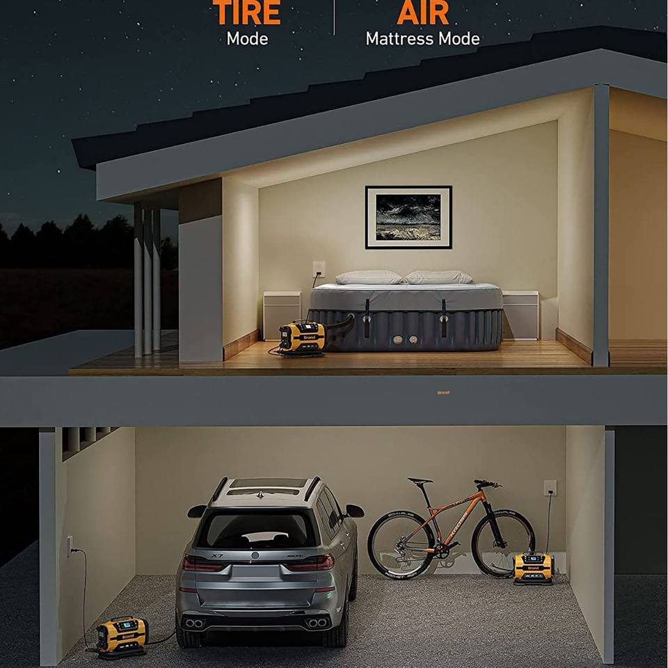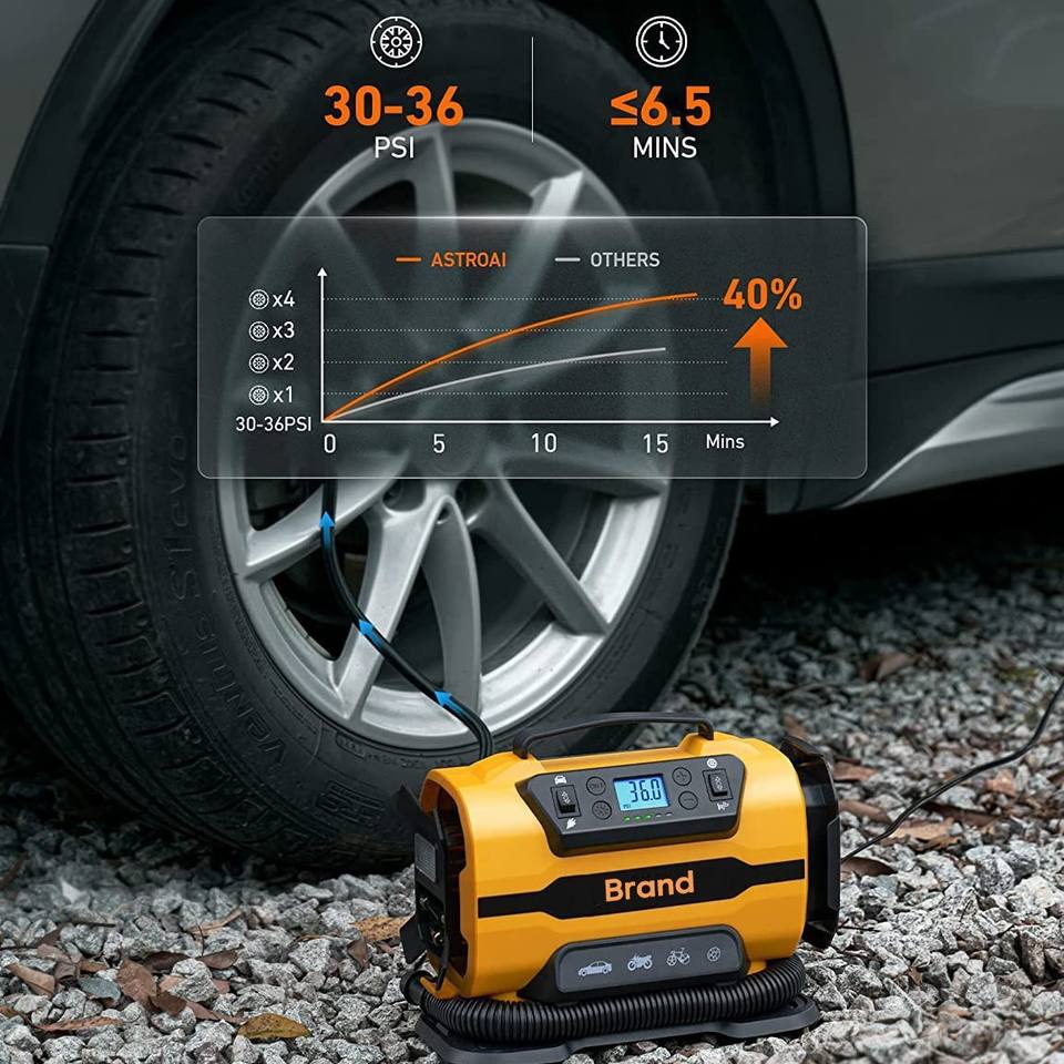 Pompe à air pour voiture en métal à double alimentation AC/DC 110-230V/12V avec manomètre numérique pour voitures, motos, vélos et ballons - Jaune/Noir