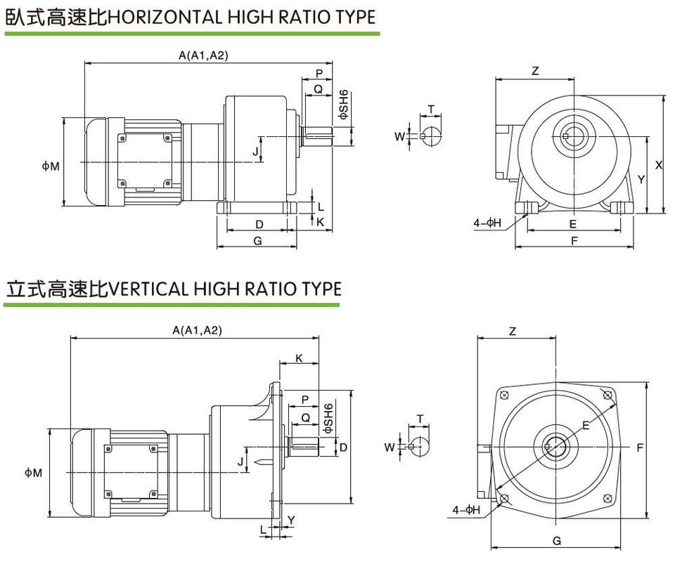 Moteur électrique AC à rapport élevé Moteur de frein triphasé vertical/horizontal à usage léger avec plaque d'aluminium/acier