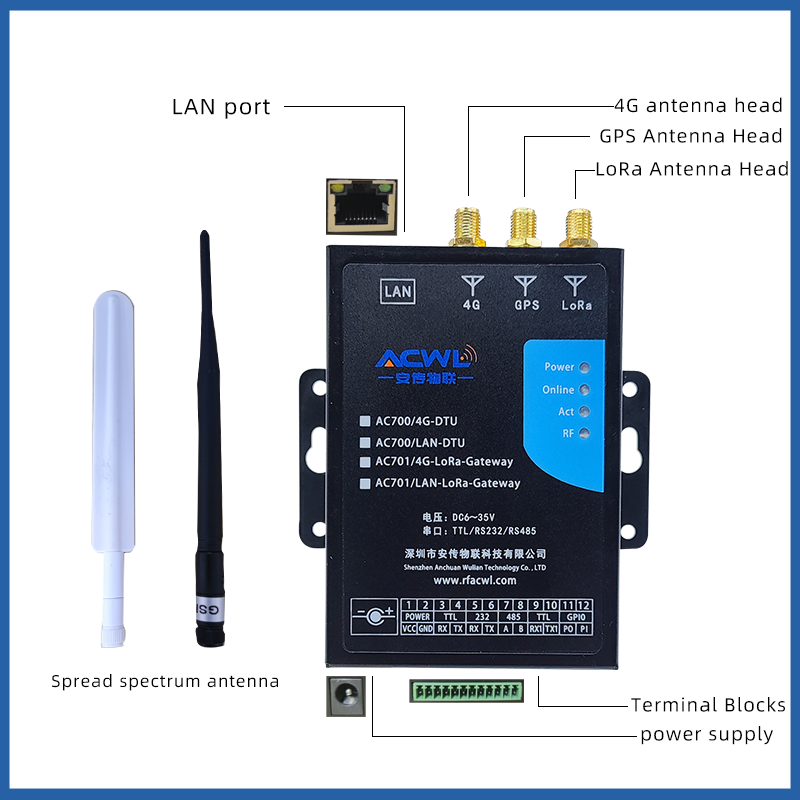 AC701 Wireless LoRa-to-4G/RJ45 Ethernet Data Trans
