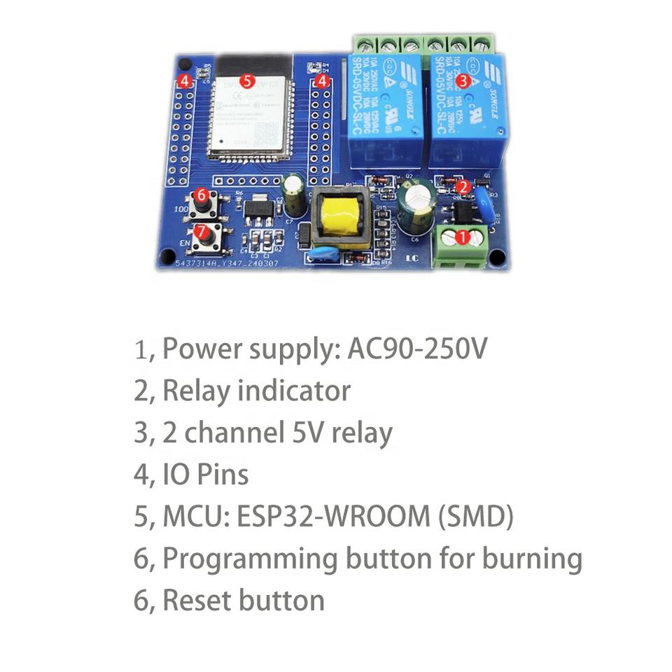 Produit:Module de relais WiFi AC ESP32 2 canaux