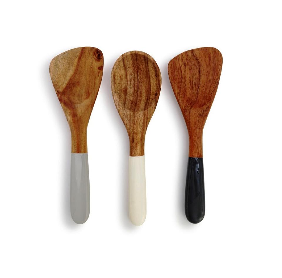 Ensemble de 2 serveurs à salade en bois d'acacia et de résine, ensemble de 2 serveurs à salade en bois de mangue, faits à la main, uniques, KETCHENWAR