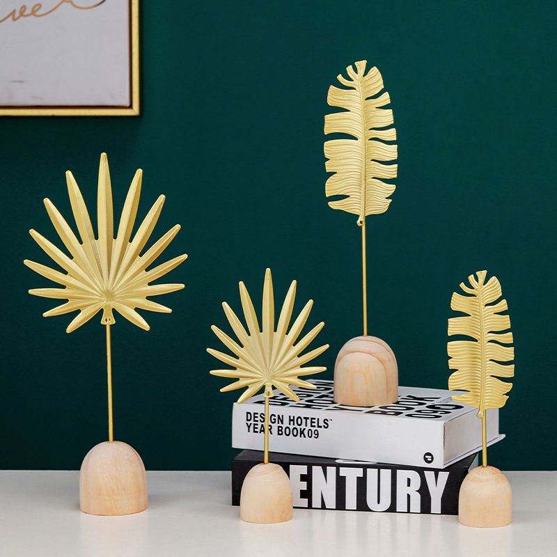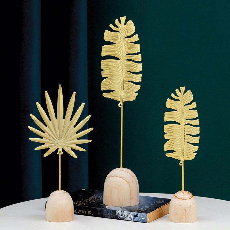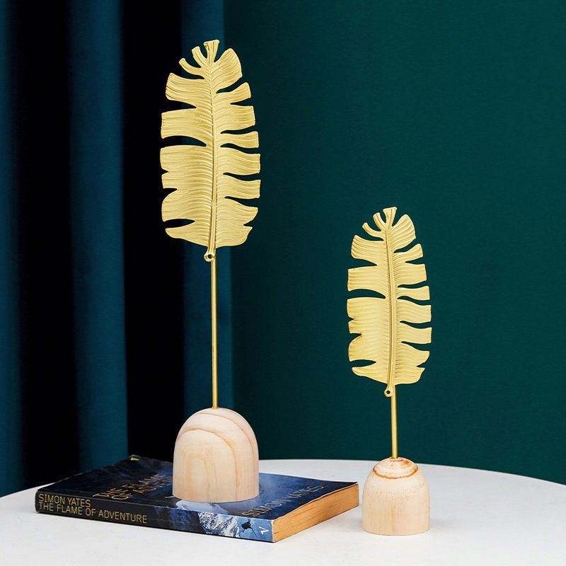 ACASA ARTO Nouvelle Statue en Alliage Feuilles Dorées sur Base en Bois Style Européen, Ornement de Table Artisanal pour la Décoration Intérieure