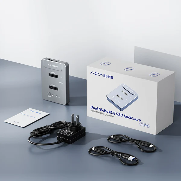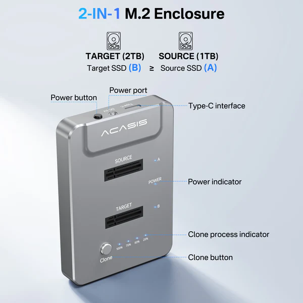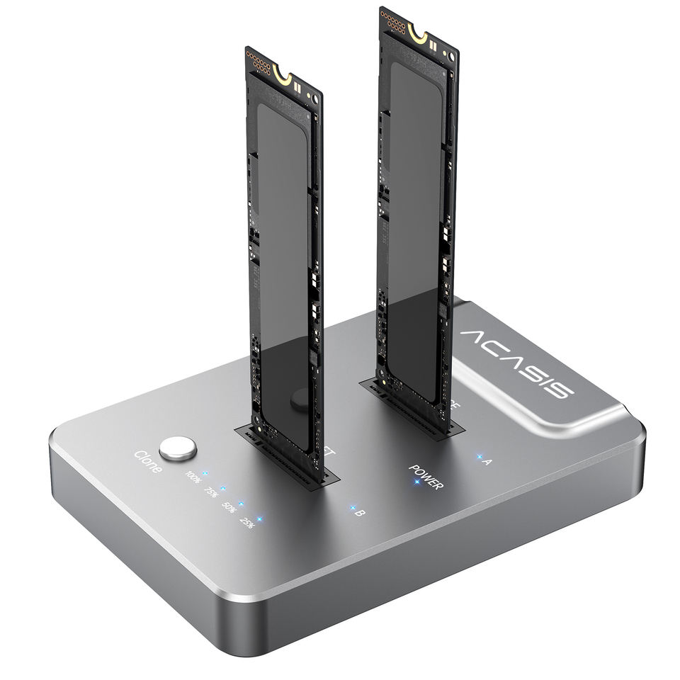 ACASIS 20Gbps NVMe M.2 Duplicateur Clone hors ligne à double baie USB C vers NVME Station d'accueil pour boîtier de disques durs M2 SSD M Key