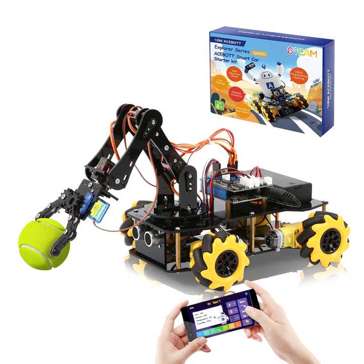ACEBOTT Programmation pour débutants 8 + Kids 4WD ESP32 Robot Arm Car Kit AI Smart Robot STEM Education DIY pour Arduino Starter Kit