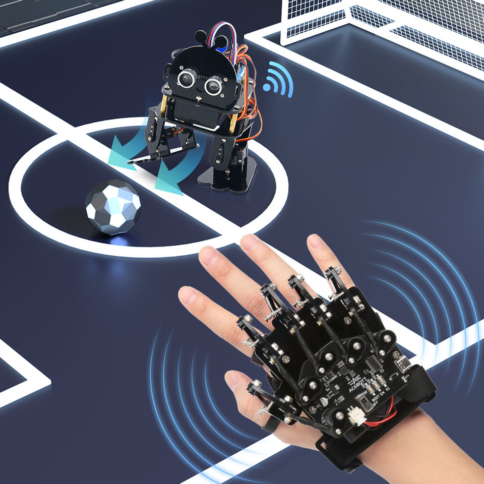 Gant de télécommande ACEBOTT avec 5 encodeurs, accéléromètre et contrôleur ESP32 amélioré pour le contrôle de robot, gant de contrôle de mouvement