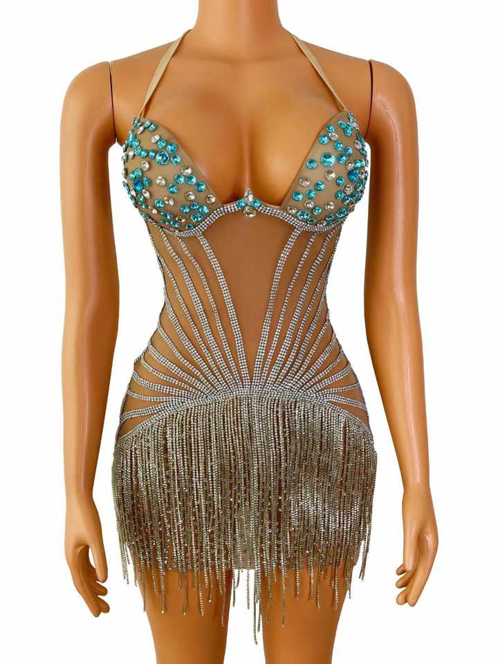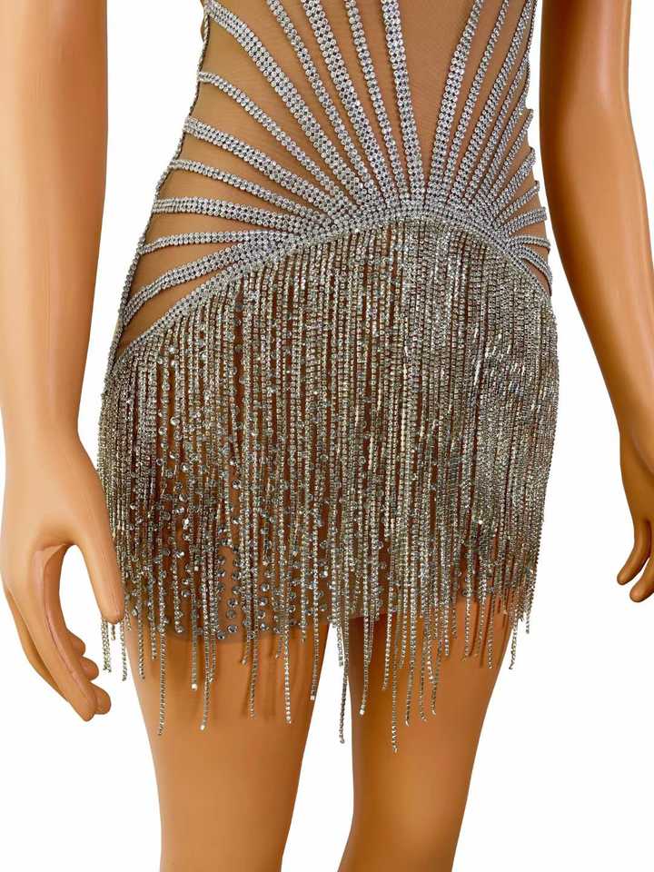 AD1193 Main Cristal Scène De Danse Porte Scintillant Argent Corps Chaîne Strass Fringe Tassel Robe Body