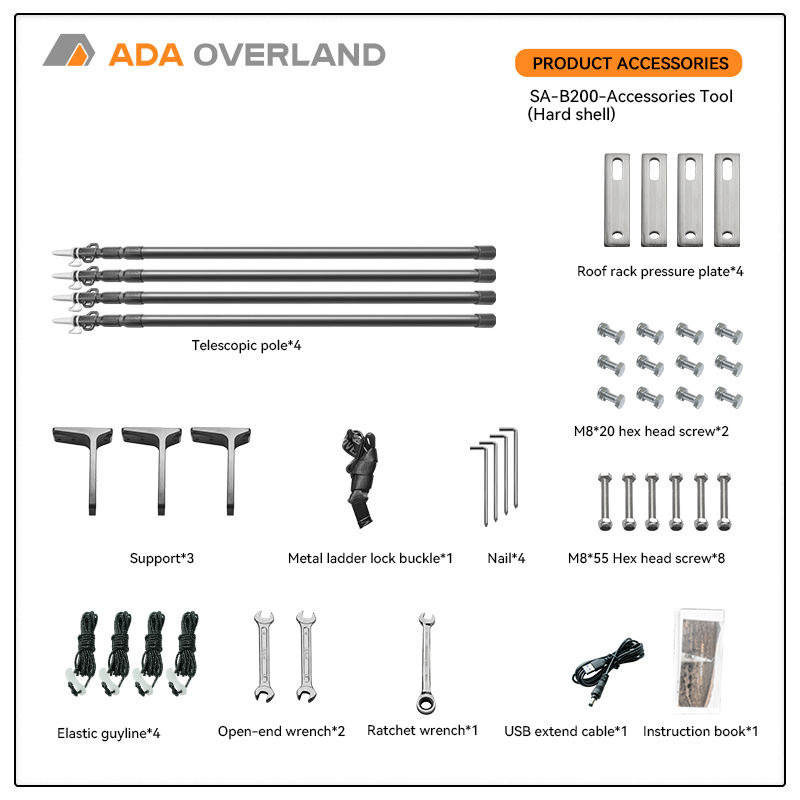 ADA OVERLAND Conception OEM Auvent de toit de voiture 270° autoportant, grand espace, tissu imperméable de qualité supérieure, pour extérieur, avec coque en EVA