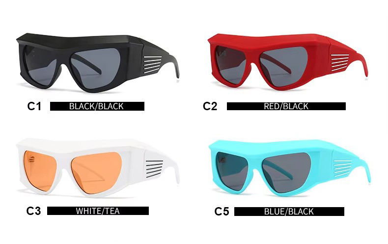 ADE WU CC1215 Heavy Square Y2K Lunettes de soleil surdimensionnées enveloppantes Lunettes de cyclisme Flat Top Candy Color Punk Trunky Lunettes de soleil