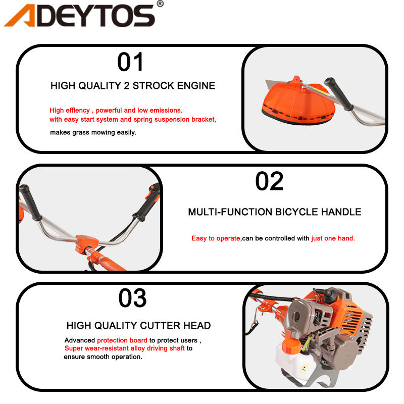 ADEYTOS Factory Wholesale 36cc Gasoline Brush Cutter 2 Stroke Gas Oil Powered String Trimmer for Garden Made of Durable Nylon