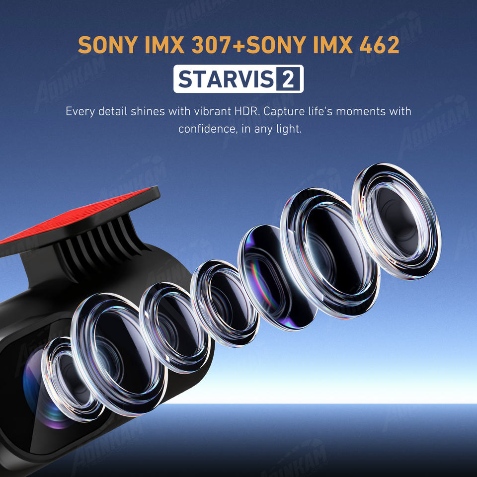 Caméra de tableau de bord ADINKAM Sony IMX Starvis 2 à double objectif, miroir, avant/arrière, 2K WDR, vision nocturne, contrôle WIFI par application, enregistreur vidéo tactile IPS