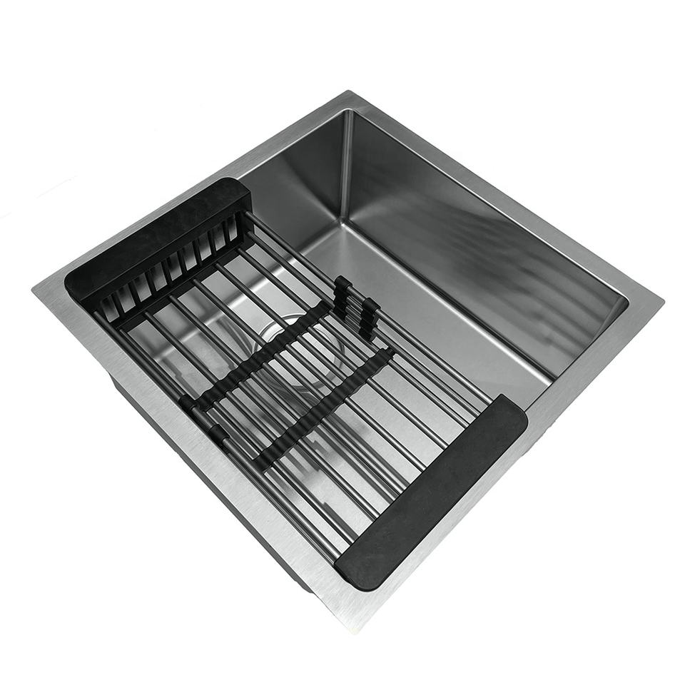 ADLONE Évier de cuisine fait main en acier inoxydable noir à une cuve avec robinet et égouttoir Produit d'usine direct