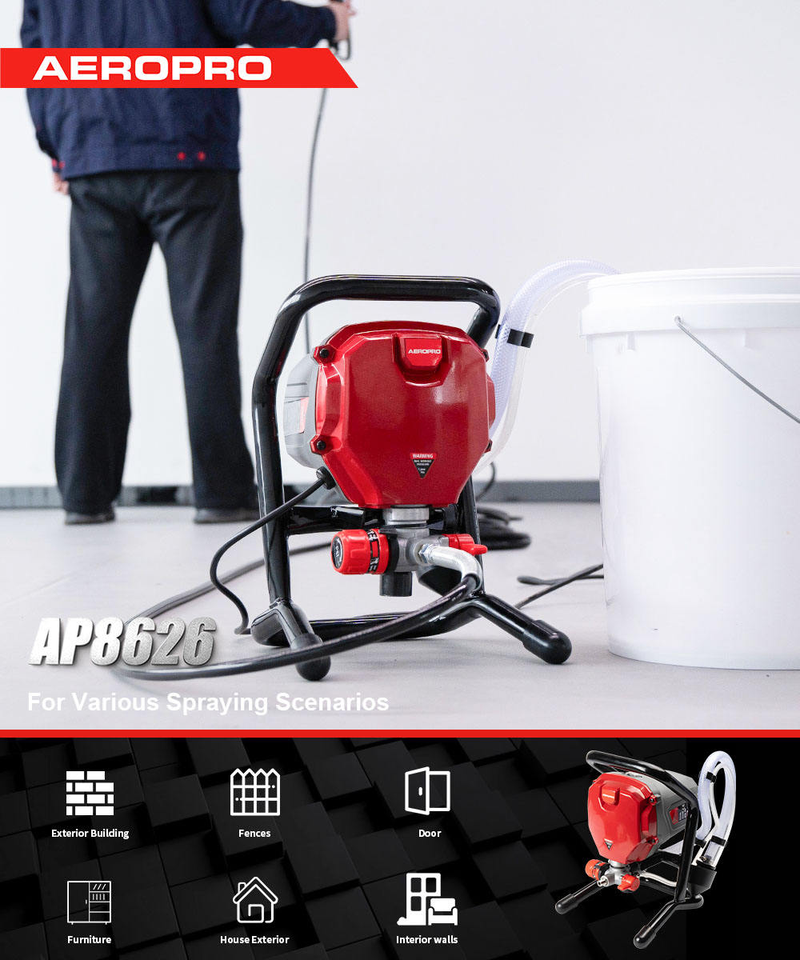Pistolet à peinture électrique sans air AEROPRO AP8626, machine à peinture avec pistolet et embouts pour peinture murale, intérieur de la maison