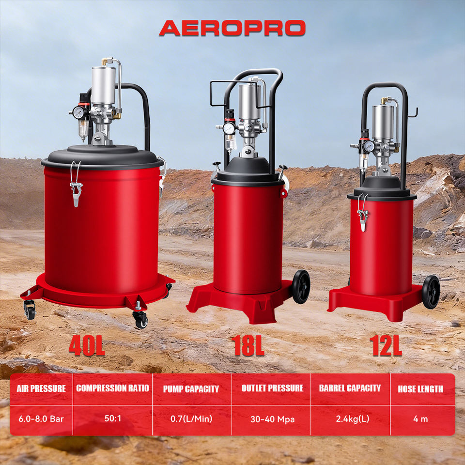 Pompe à graisse AEROPRO R806 40 litres, pompe à graisse pneumatique à air comprimé avec tuyau haute pression et pistolet à graisse