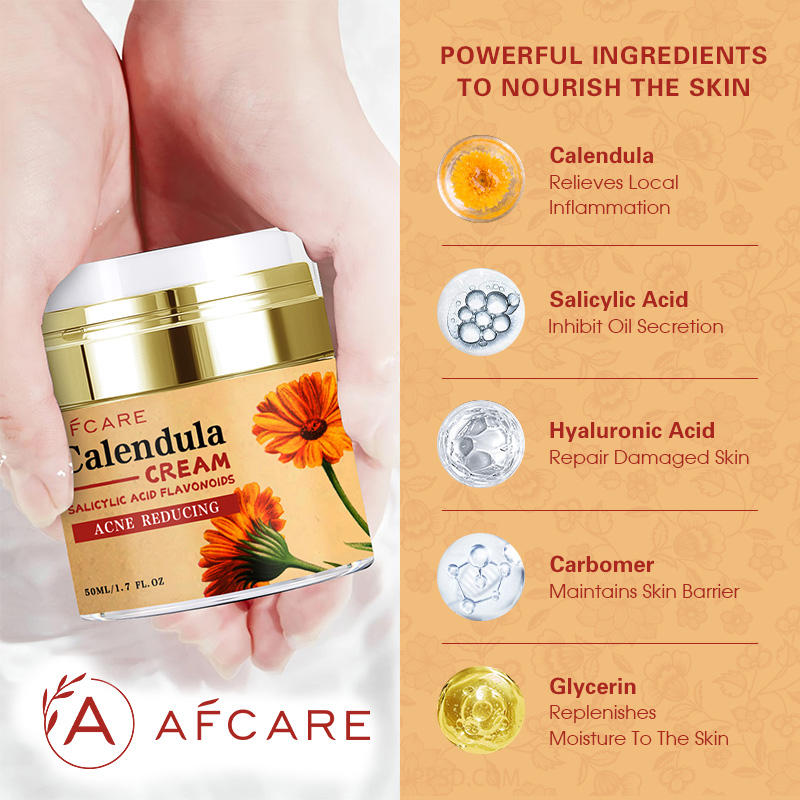 Crème Réductrice de Pores à la Calendula Naturelle AFCARE 50ML Élimination Rapide des Grands Pores Élimination des Points Noirs Soin de la Peau du Visage Lisse