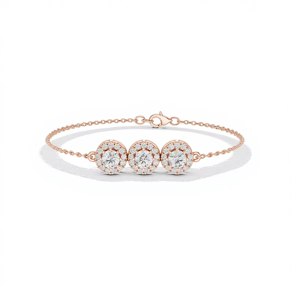 Ensemble bracelet et diamant rond de laboratoire abordable, serti d'une halo en or rose 18 carats, pour usage quotidien, bureau, mariage, fiançailles, pour femmes