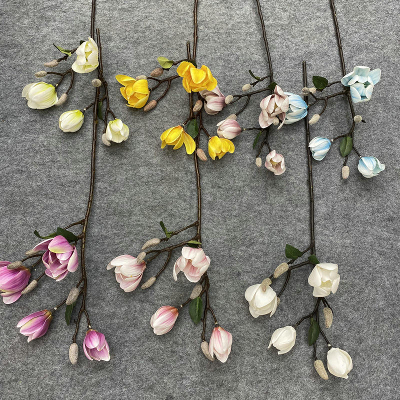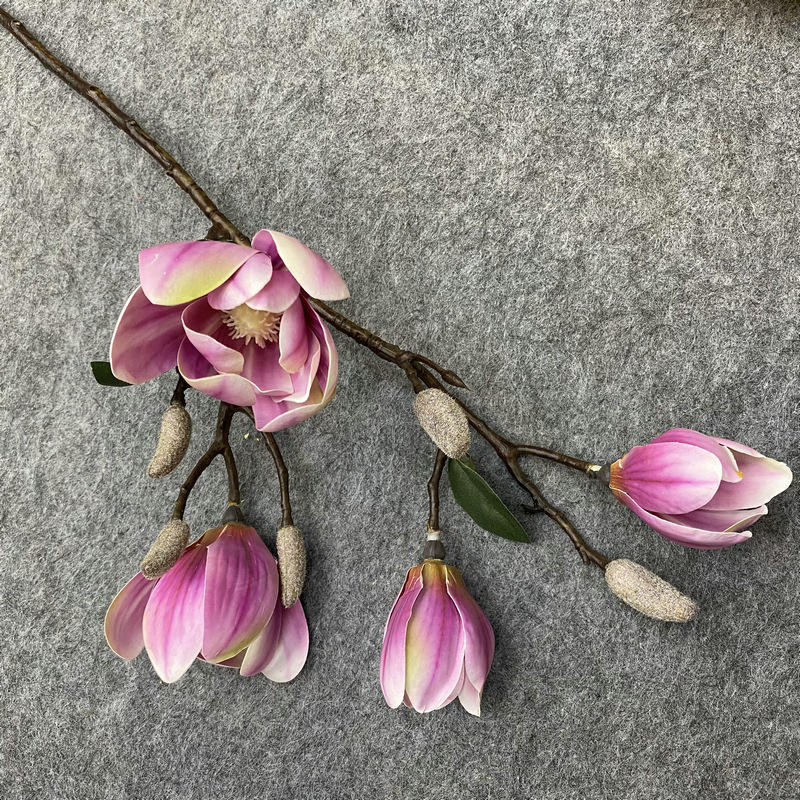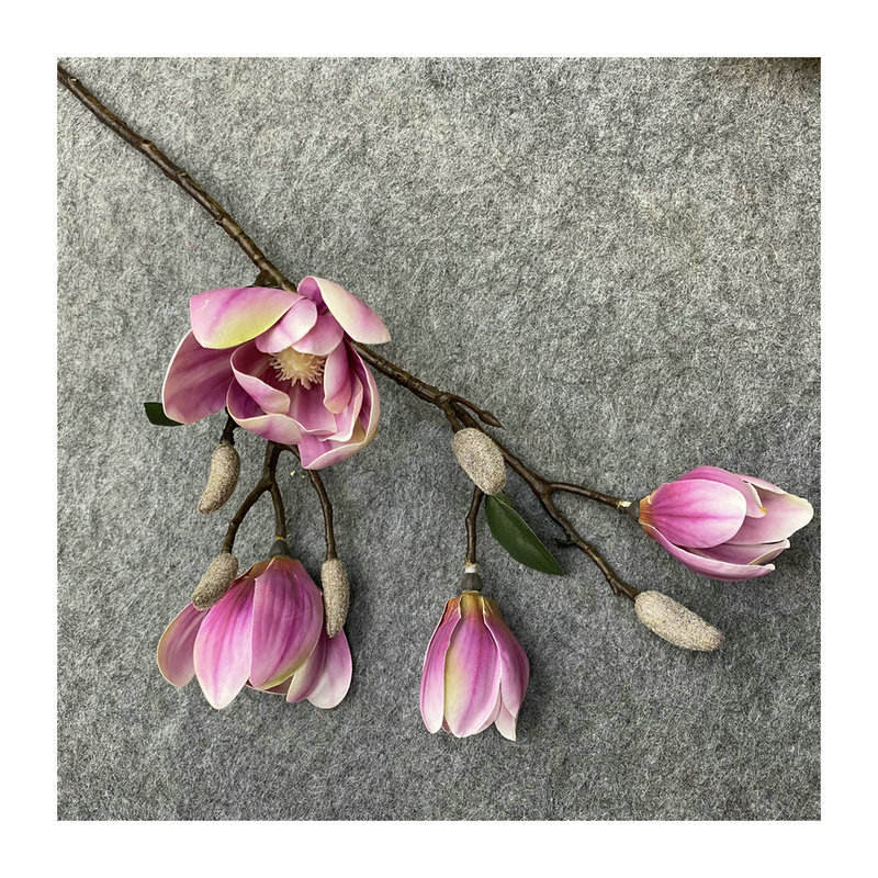 AFR043 Haute Simulation Blanc Violet 70cm Faux Magnolia Fleurs Artificielles pour Mariage Diy Bouquet Maison Pièce Maîtresse Fleur Décor
